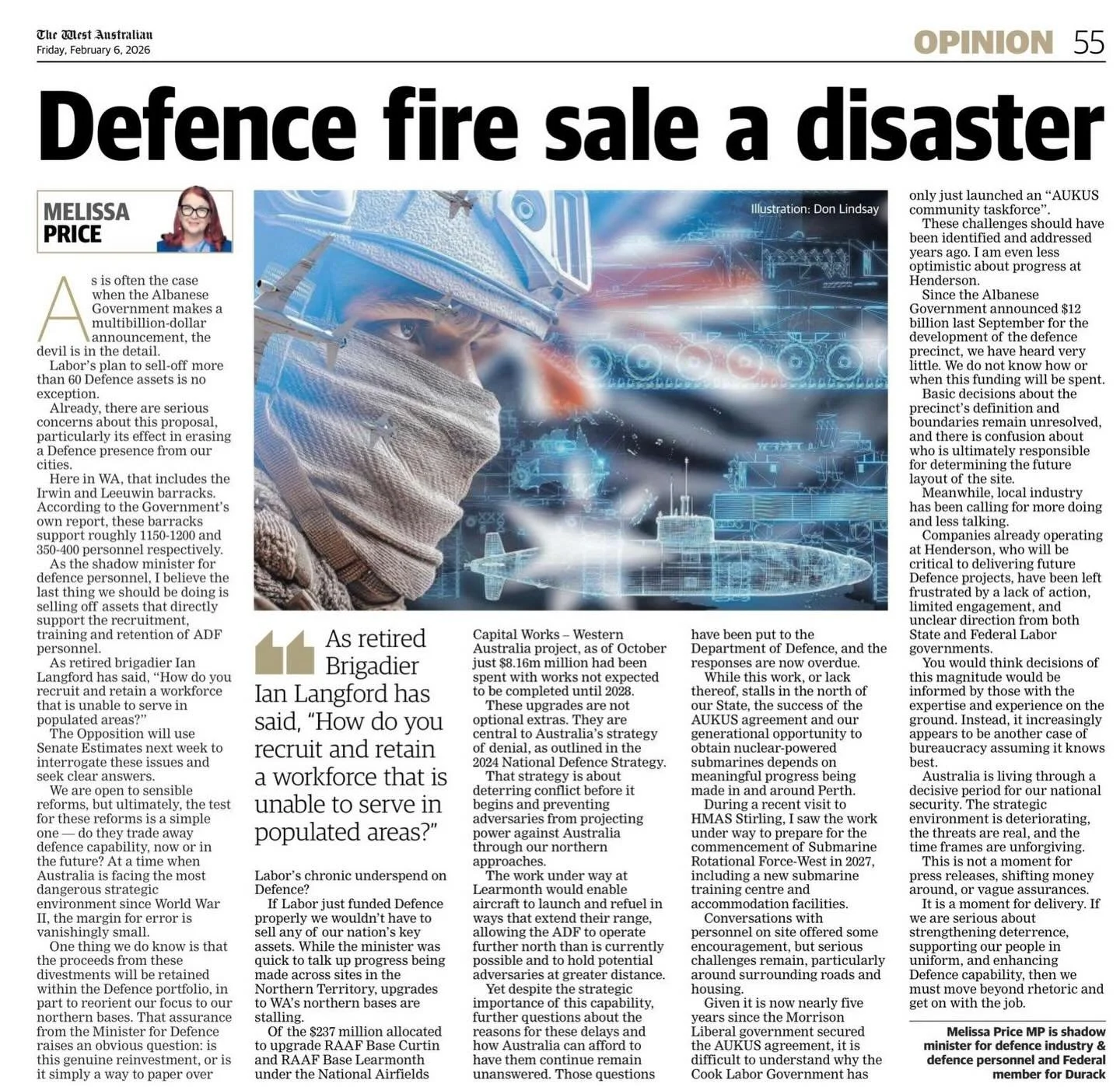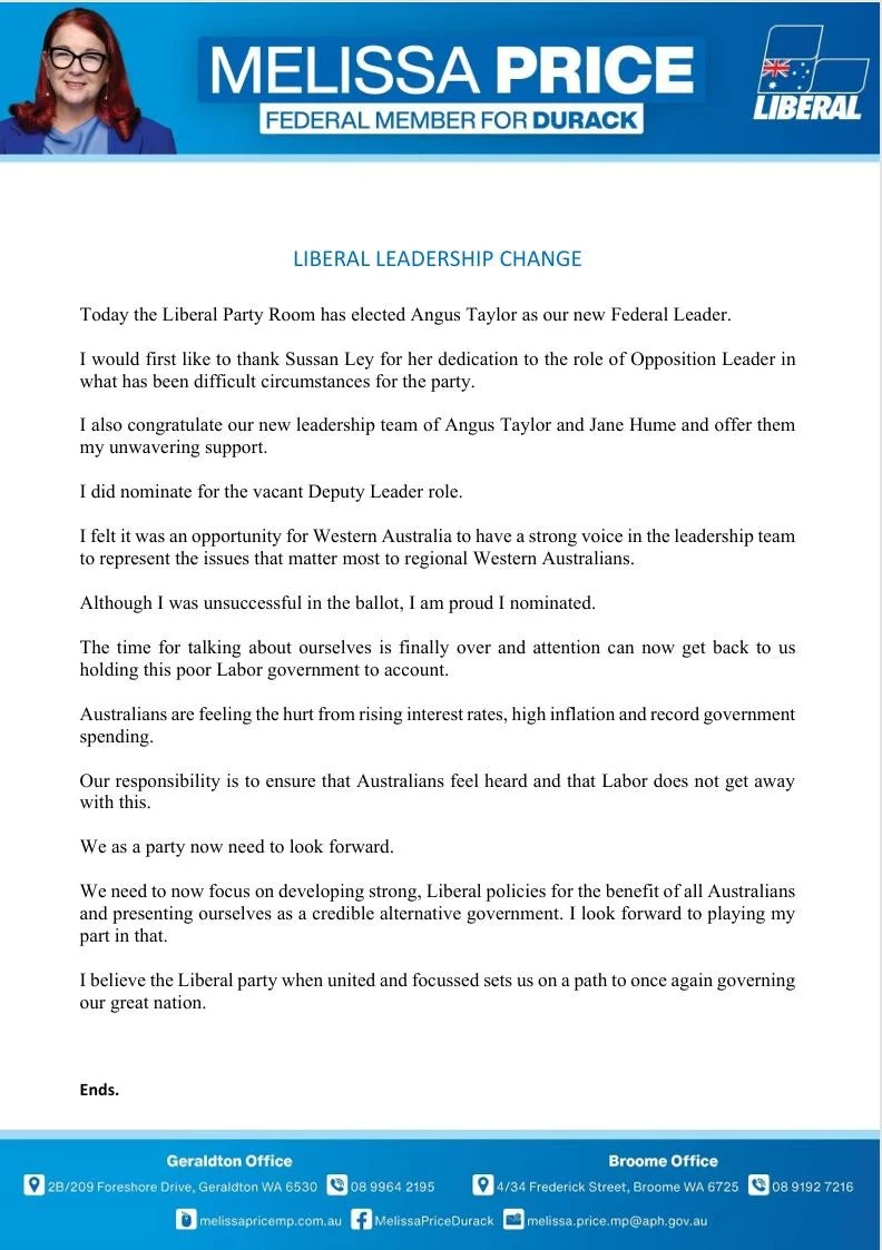 Melissa was first elected to Parliament as the Member for Durack, the largest electorate in Australia, in 2013. Born and raised in the remote gold mining town of Kalgoorlie-Boulder, she relished the opportunity to represent the diverse interests of a rural electorate that covers approximately half of the state of Western Australia.