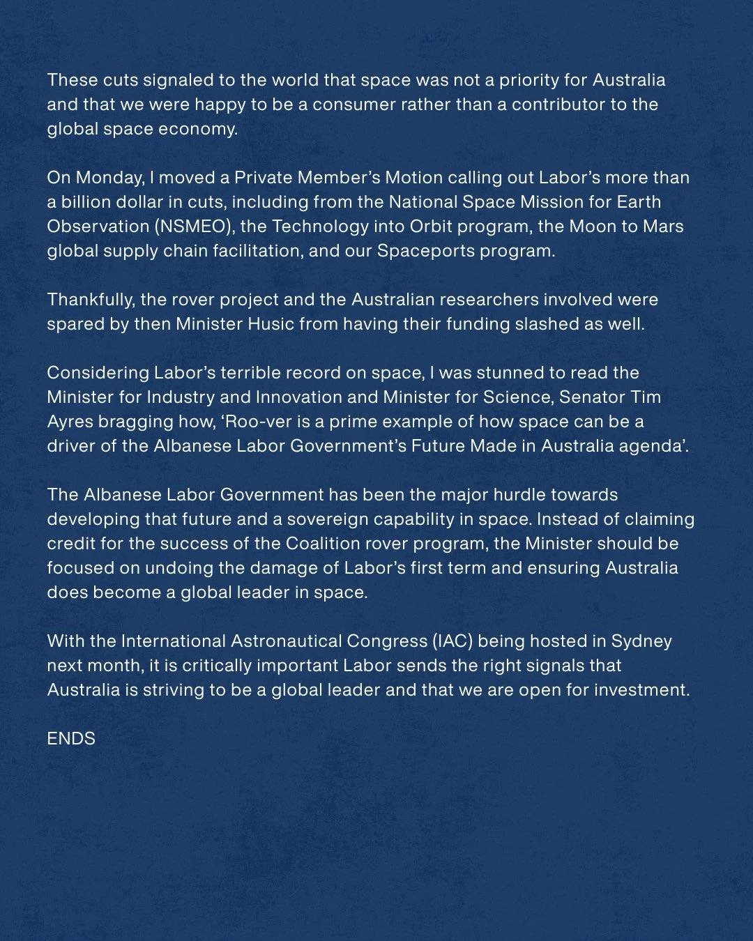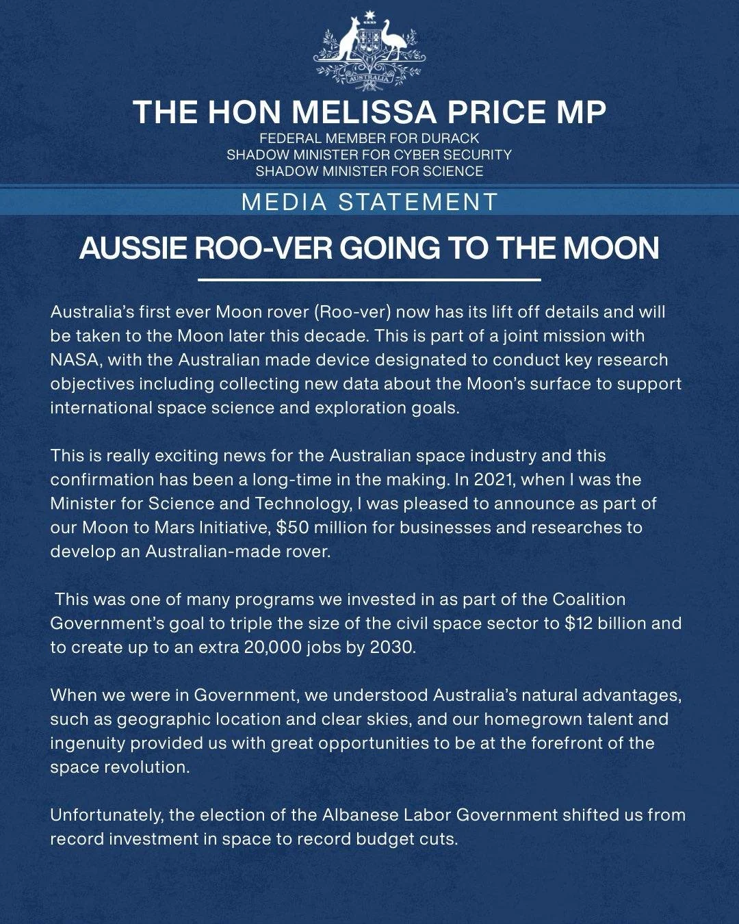 August 29, 2025 Jackie Perry Media Statement - Aussie Roo-ver Going to the Moon August 29, 2025 Jackie Perry Jackie Perry
